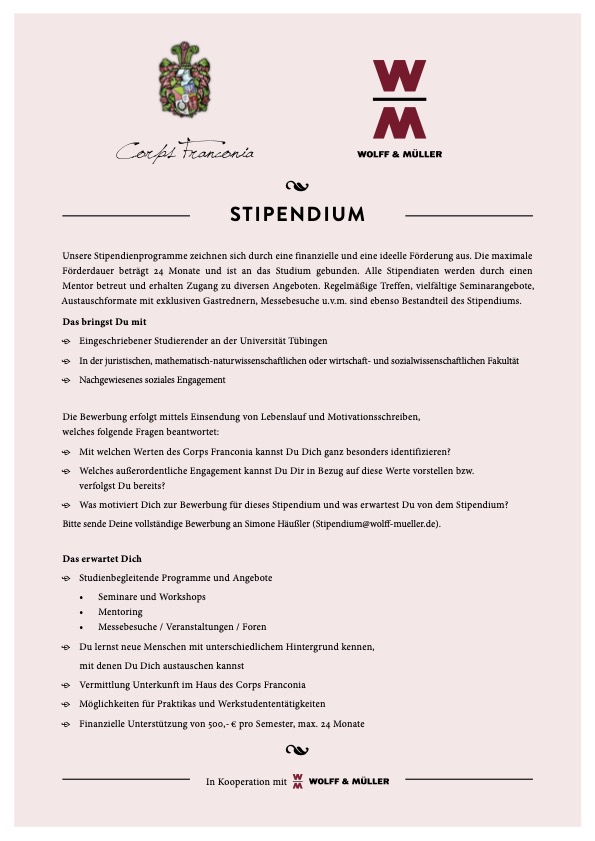 Bitte sende Deine vollständige Bewerbung an Simone Häußler: stipendium@wolff-mueller.de.
